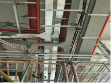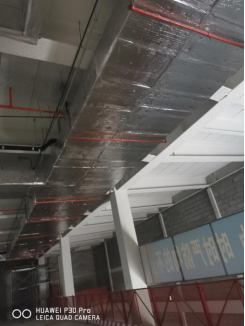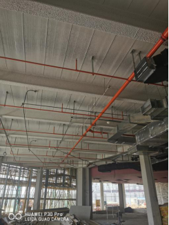 明装报警管线吊杆垂直并喷涂防火涂料 风管下喷头居中设置美观