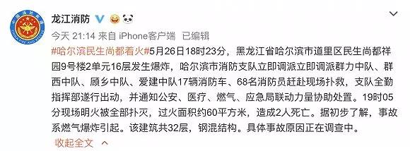 一小区居民楼16层因燃气泄漏发生爆炸继而引发火灾,造成2人死亡。