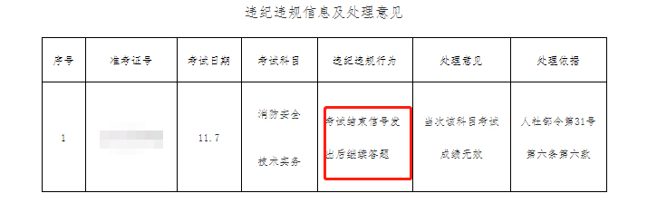 根据《专业技术人员资格考试违纪违规行为处理规定》(人社部令第31号)相关条款规定,现将本市2020年度全国一级注册消防工程师资格考试中已认定的违纪违规考生信息和处理意见公告如下,考生如对所认定的违纪违规事实存在异议,可在公告发布之日起5个工作日内向我院陈述和申辩,逾期未陈述申辩的视为认可违纪违规事实和处理意见。联系电话:021-61969000。对评卷过程中发现的违纪违规行为,按照相关规定进一步处理。