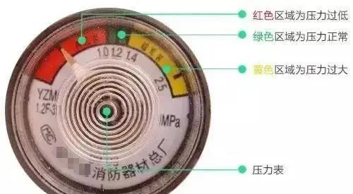 2、储压式灭火器压力符合要求,压力表指针在绿区;