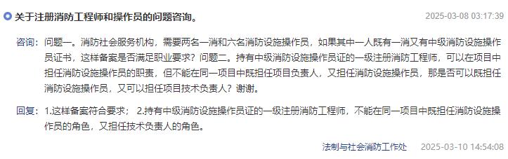 咨询:关于注册消防工程师和操作员的问题