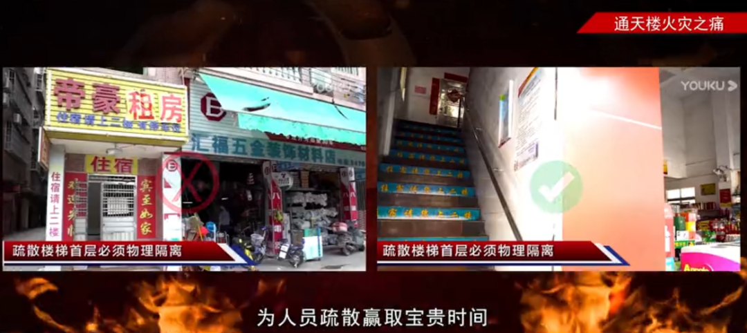 起火建筑生活区域与回收的废旧物品存放区域未进行防火分隔,是典型的通天楼梯。火灾发生后,有毒烟气窜入楼梯间形成“烟囱效应”,导致屋内人员疏散逃生困难。